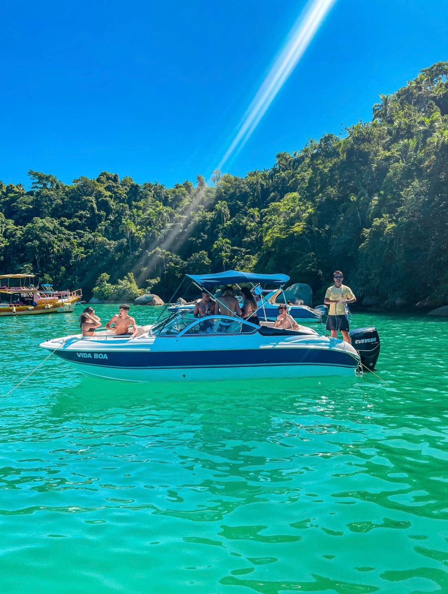 Eu sou a Phoenix 23,5 pés meu nome é Mahalo com capacidade total para 9 pessoas, equipada com um motor Evirunde de 200 HP para o seu passeio privativo com tranquilidade e conforto.